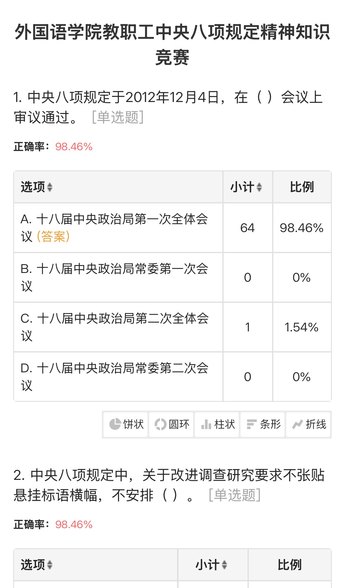 通过各系部积极组织发动,全院共有72名教师参与答题。学院将以此次知识竞赛为契机,推动深入贯彻中央八项规定精神学习教育融入日常、抓在经常,真正化为自觉、形成习惯,在遵规守纪中涵养良好作风。
