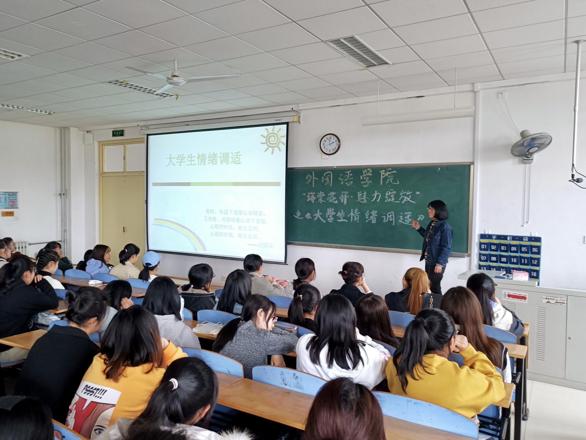 为守护学生心理健康,提高学生心理素质,培养积极向上的乐观心态,10月28日下午,大学生心理健康教育中心陈朝霞老师给外国语学院2020级新生开展了一次以“大学生情绪调试”为主题的心理讲座。