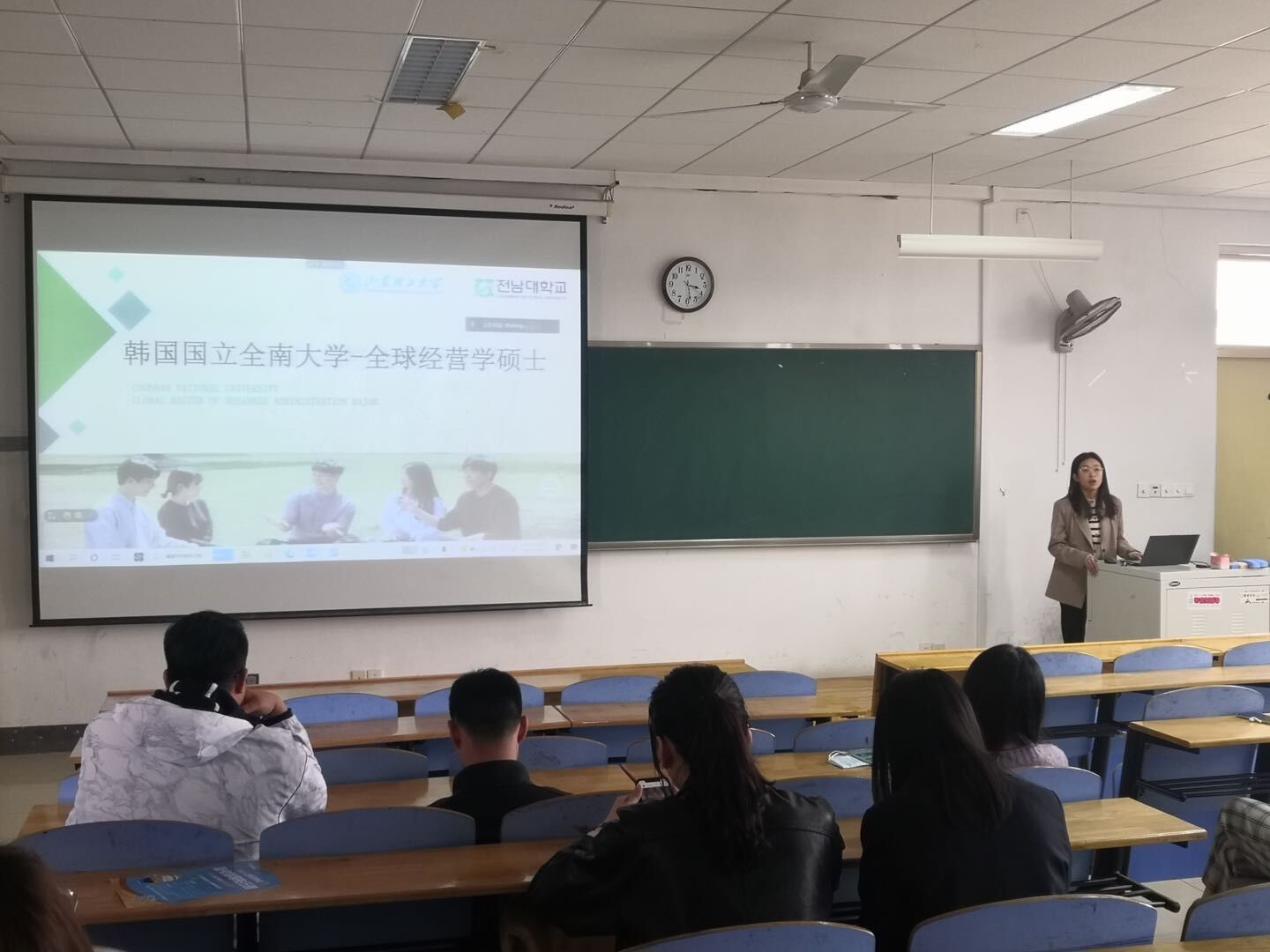 首先,日语系主任王家动老师介绍了学院与日本高校合作项目以及往届生在日本留学与就业的实例;俄语系邹志鹏老师从赴俄留学优势、对俄合作情况及赴俄注意事项等几个方面与大家进行了分享;企业特邀韩语老师主要讲解了韩国国立全南大学硕士项目。随后,老师们就同学们的疑问进行解答,并予以建议和指导。