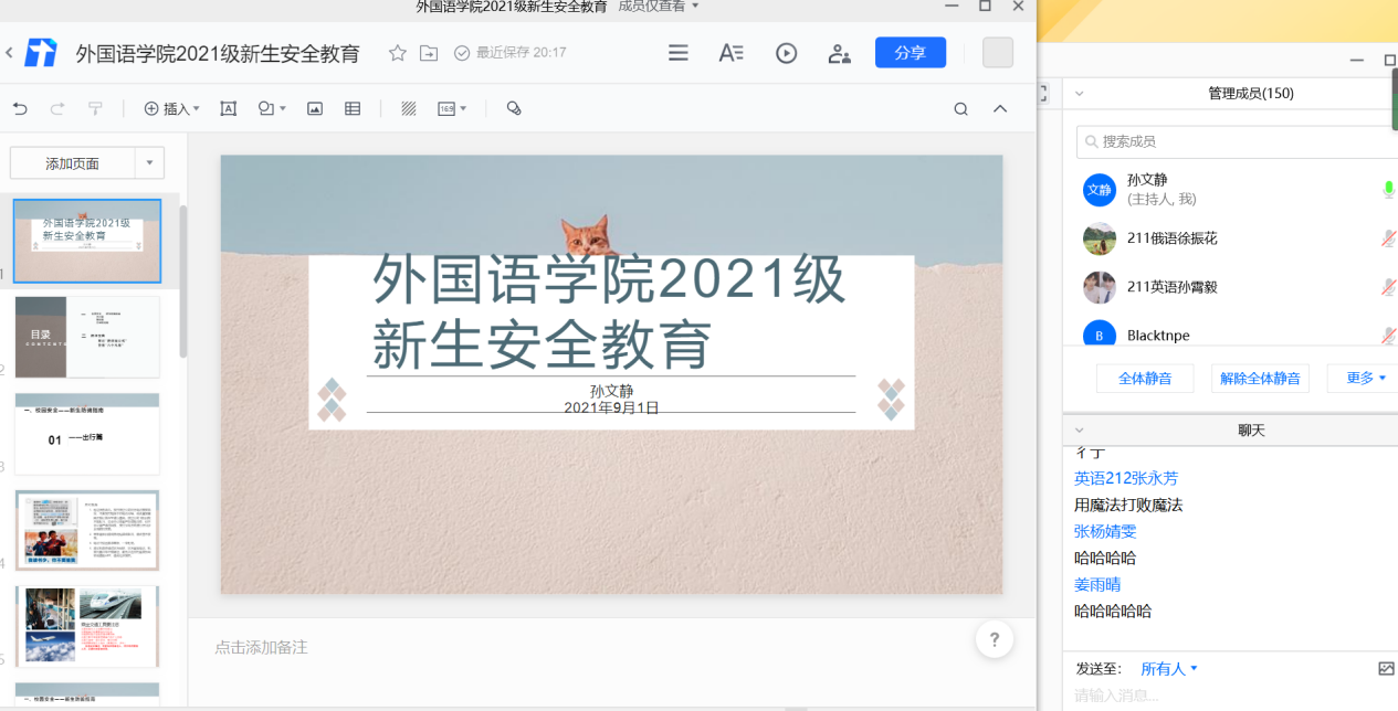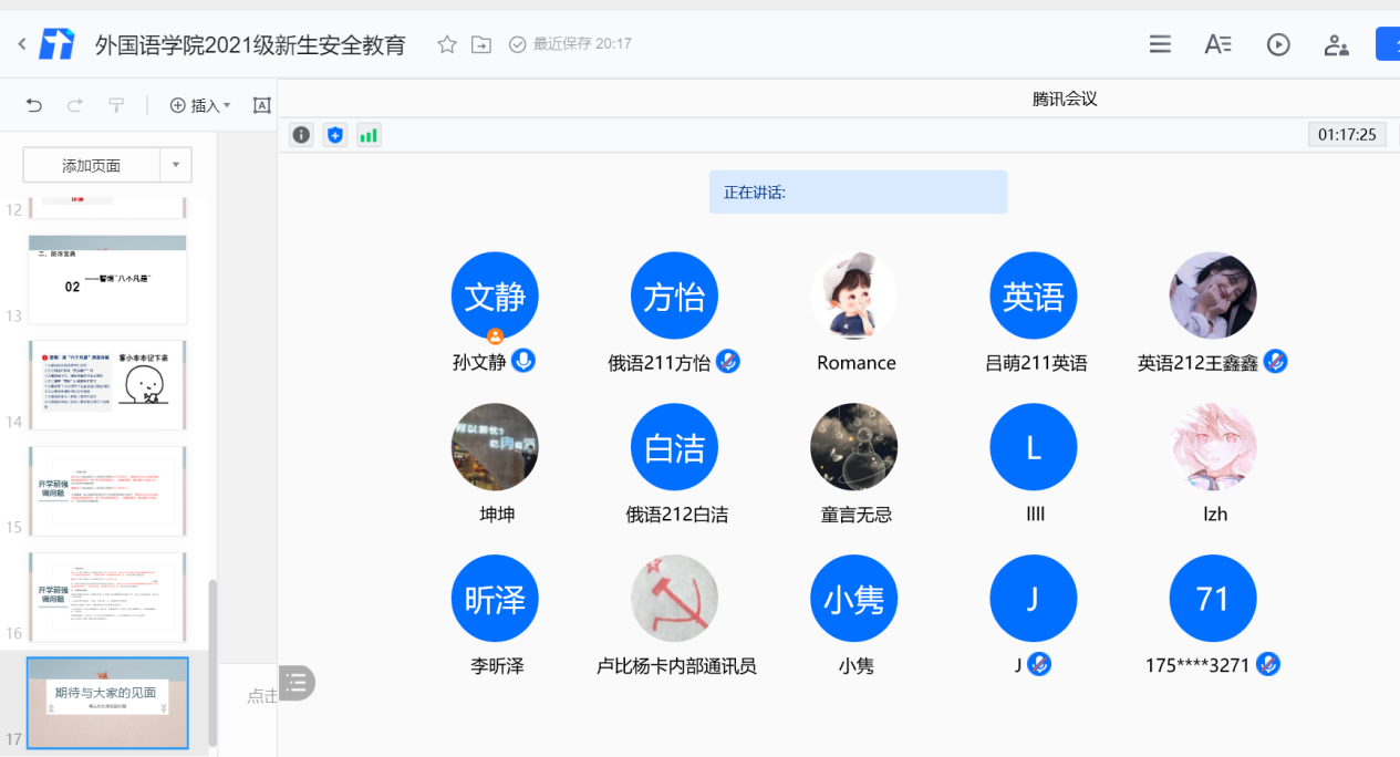 外国语学院学工团队群策群力,集体探索和研究教学工作,形成了“腾讯直播课堂+课堂授课”线上线下相结合的授课模式。学工思政先行课从安全教育、疫情防控教育、劳动教育、国防教育、心理健康教育五部分引导学生积极规划新学期的学习生活,遵循“思政课先行,思政课能行,思政课必行”的理念,旨在培养学生爱国、爱校的家国情怀。