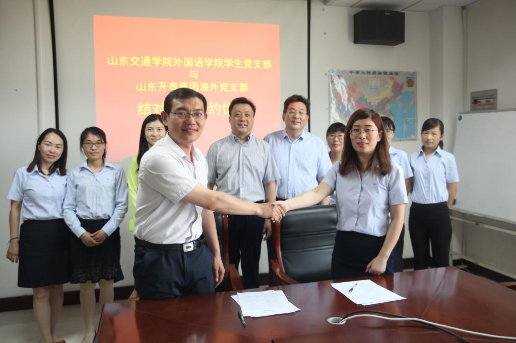 为进一步加强高校基层党支部与企业党支部的党建工作,充分发挥高校基层党支部的人才资源优势、企业党支部的平台优势,促进高校与企业基层党组织互学互促、互帮互进,全面提升基层党建工作水平,山东交通学院外国语学院学生党支部与山东开泰集团海外党支部举行结对共建签约仪式,双方党员代表参加会议。