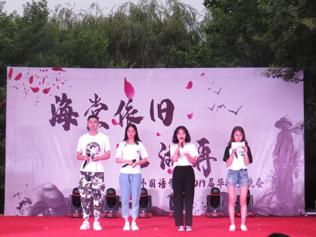 6月5日晚,外国语学院“海棠依旧、江湖再见”2019届毕业生欢送晚会在下沉广场顺利进行。外国语学院分党委书记、院长、辅导员老师、毕业生任课老师以及全体毕业生出席了本次晚会。