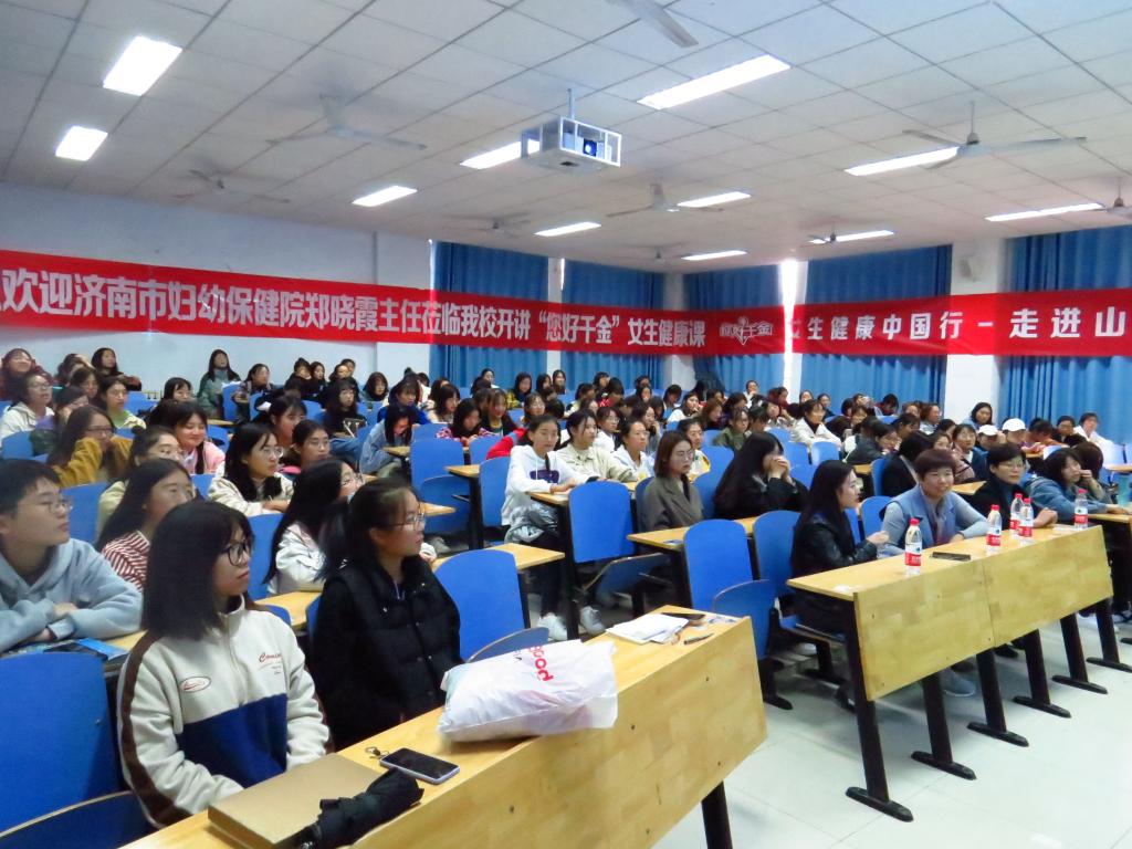 10月18日,我校在2号教学楼举办女大学生生理健康教育主题讲座,本次讲座邀请济南妇幼保健院郑晓霞主任主讲,我校200余名女大学生参加本次活动。