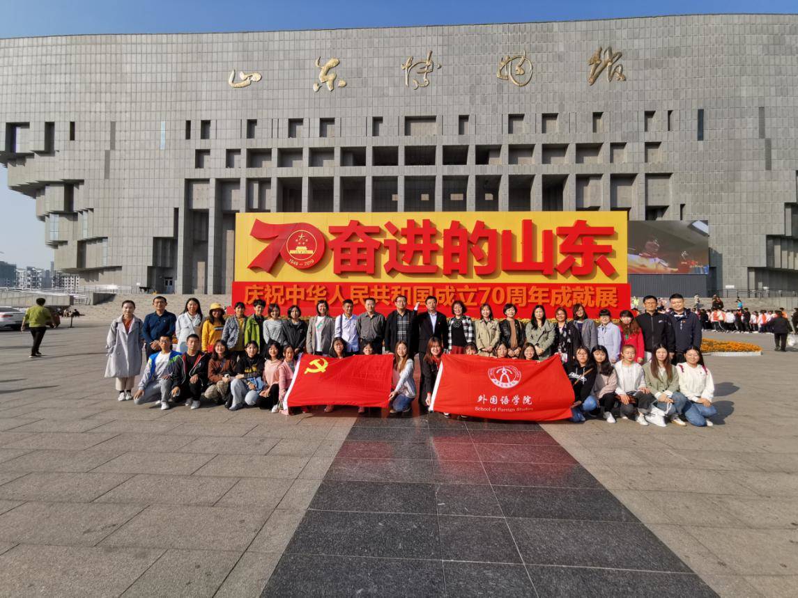 为深入贯彻落实学院党委关于开展“不忘初心、牢记使命”主题教育的部署安排,10月19日外国语学院分党委组织师生党员赴山东省博物馆参观“奋进的山东”——庆祝中华人民共和国成立成立70周年成就展。