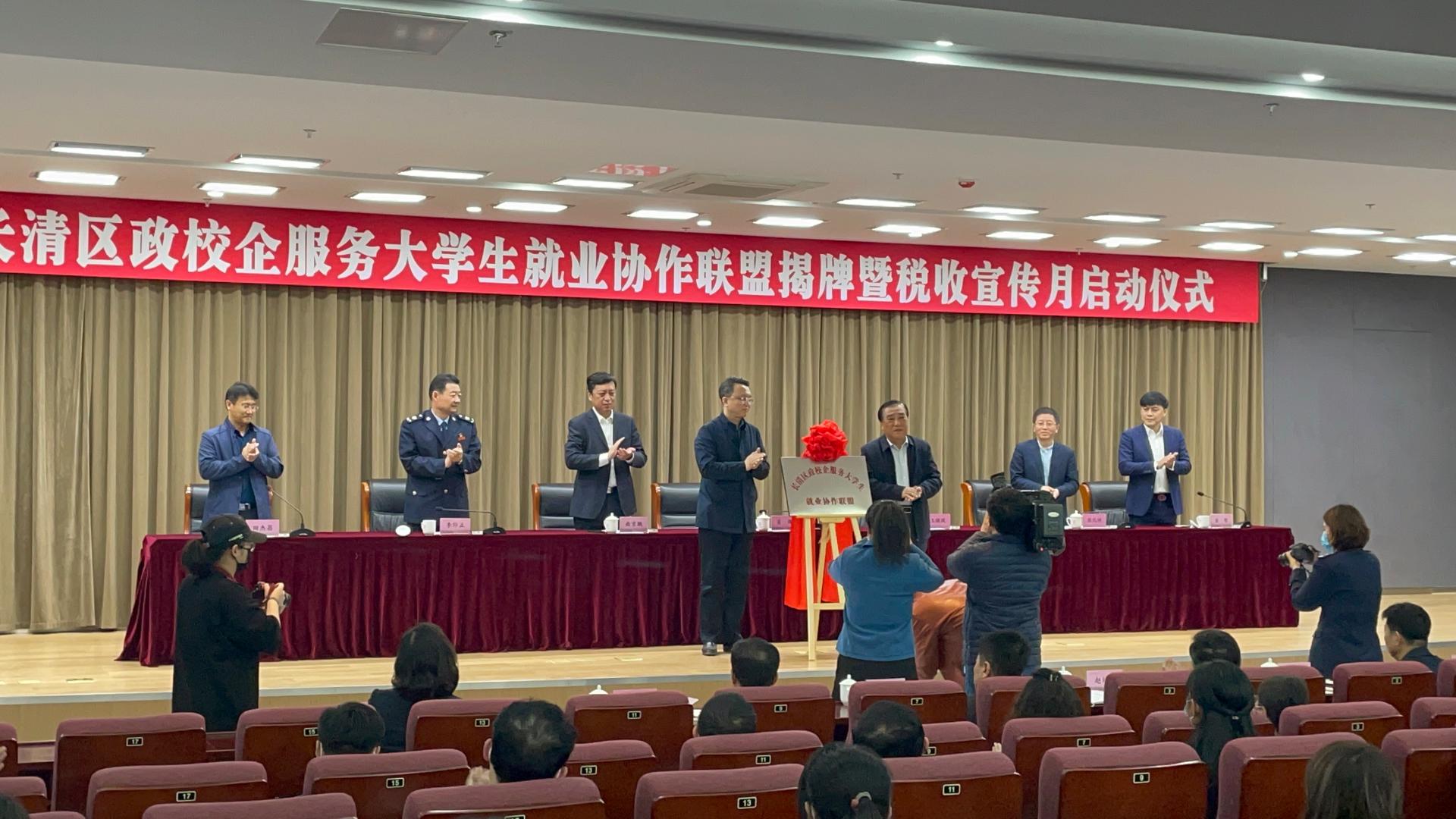 王焕斌、肖辉共同为“长清区政校企服务大学生就业协作联盟”揭牌。