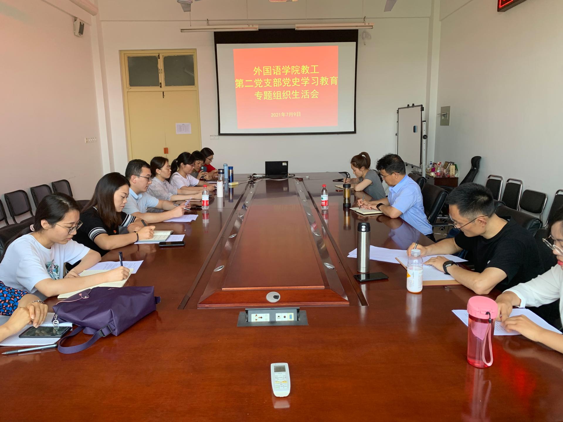 7月9日下午,外国语学院教工第二党支部在二号教学楼A310会议室召开党史学习教育专题组织生活会,学校党委委员、组织部部长田杰昌参加会议。