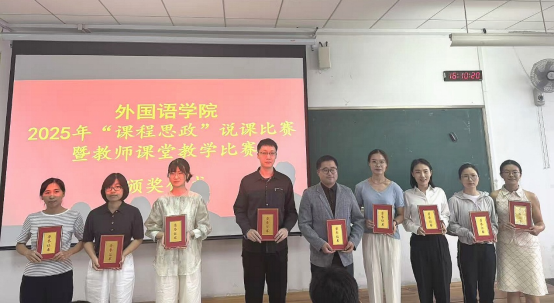 为深入贯彻落实立德树人根本任务,推动教育教学改革创新,提升外语教师专业素养与教学能力,遴选教师参加山东交通学院2025年课堂教学比赛,9月17日下午,外国语学院在2A302举行了“课程思政”说课比赛暨教师课堂教学比赛,学院全体教师全程观摩。