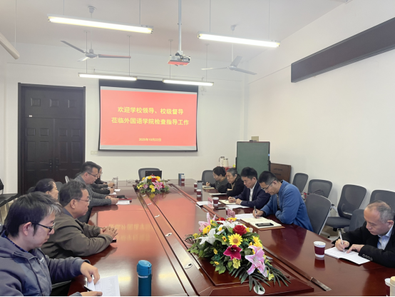 10月22日上午,学校党委委员、副院长李秀领带队前往外国语学院,实地检查对预评估专家组反馈问题的整改措施、进展与成效。